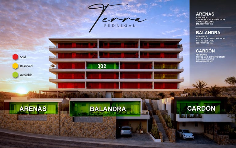 Three exclusive and one-of-a-kind Residences at Terra Pedregal. We've poured all our creativity and refined taste into the design of these three unique homes.Be part of a distinctive lifestyle in the most exclusive area of La Paz.